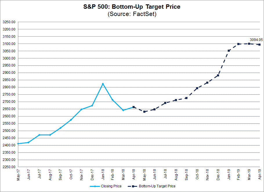 Medianriktkursen för S&P-komponenterna gör att avkastningen för indexet väntas bli 16,2 procent de kommande tolv månaderna. Mest positiva är man inom hälsovård (+18,8 procent), informationsteknologi (+18,2 procent) och energi (18 procent). Allmännytta har sämst utsikter med medianriktkurser som indikerar en avkastning på 4,8 procent.