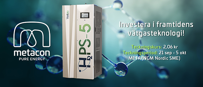 Under samma period har efterfrågan på Metacons produkter ökat kraftigt. För att möta den expansiva marknadsutvecklingen har Bolaget nu beslutat att erbjuda en möjlighet att investera i framtidens vätgasteknologi.