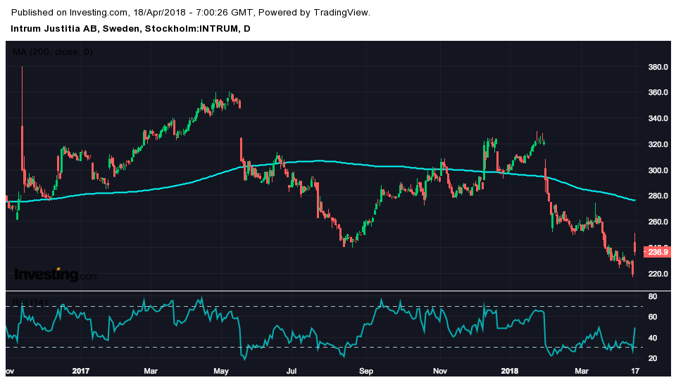 Aktien öppnade upp starkt under gårdagen men föll successivt tillbaka under handelsdagen och tekniskt, givet den fallande primärtrenden, finns en risk för gapfill.