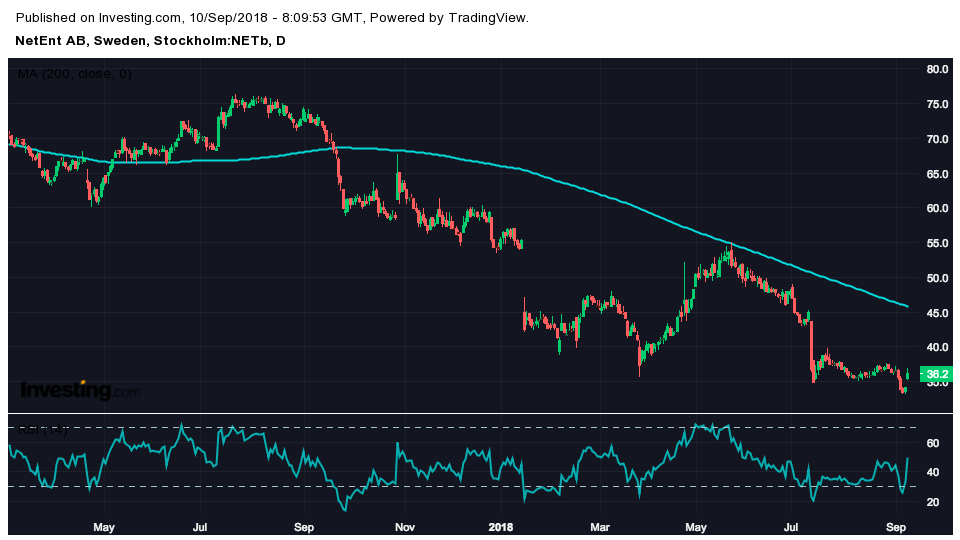 Dagens kursrusning till trots ser kursgrafen för Netent allt annat än munter ut.