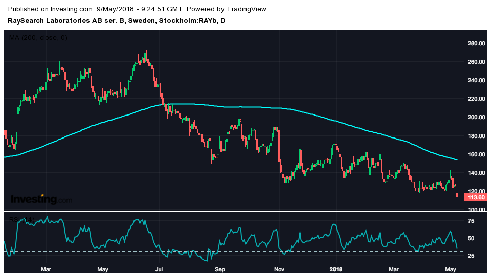 | Raysearch | −8,0% | Redovisar minskad omsättning och rörelseresultat |