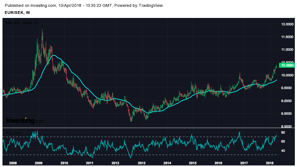 Prognosen för tredje kvartalet sänks till 9,75 kronor per euro. UniCredits tidigare prognos från den 6 april var en EUR/SEK-kurs på 9,70 kronor i andra kvartalet och 9,65 kronor i tredje kvartalet.